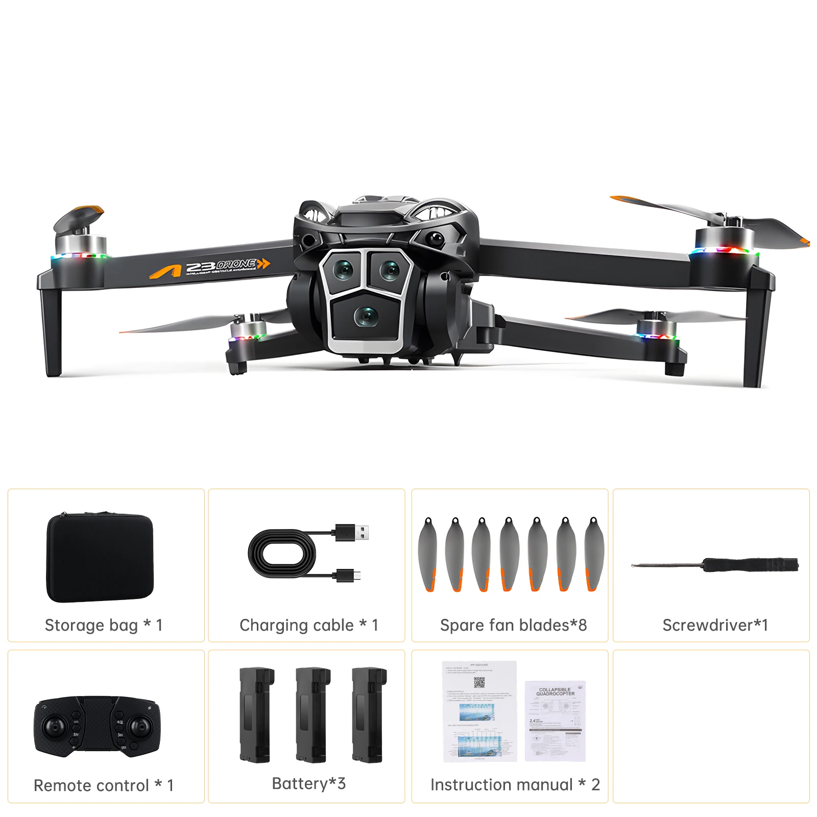 6.Drone size:24x36x5.5CM