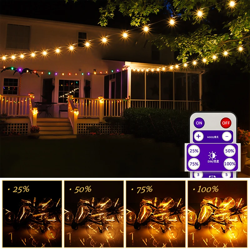ST38 Solar Outdoor String Light with Remote,8 Light Mode,Waterproof Dimmable Timer Shatterproof Bulb for Backyard, Porch, Garden