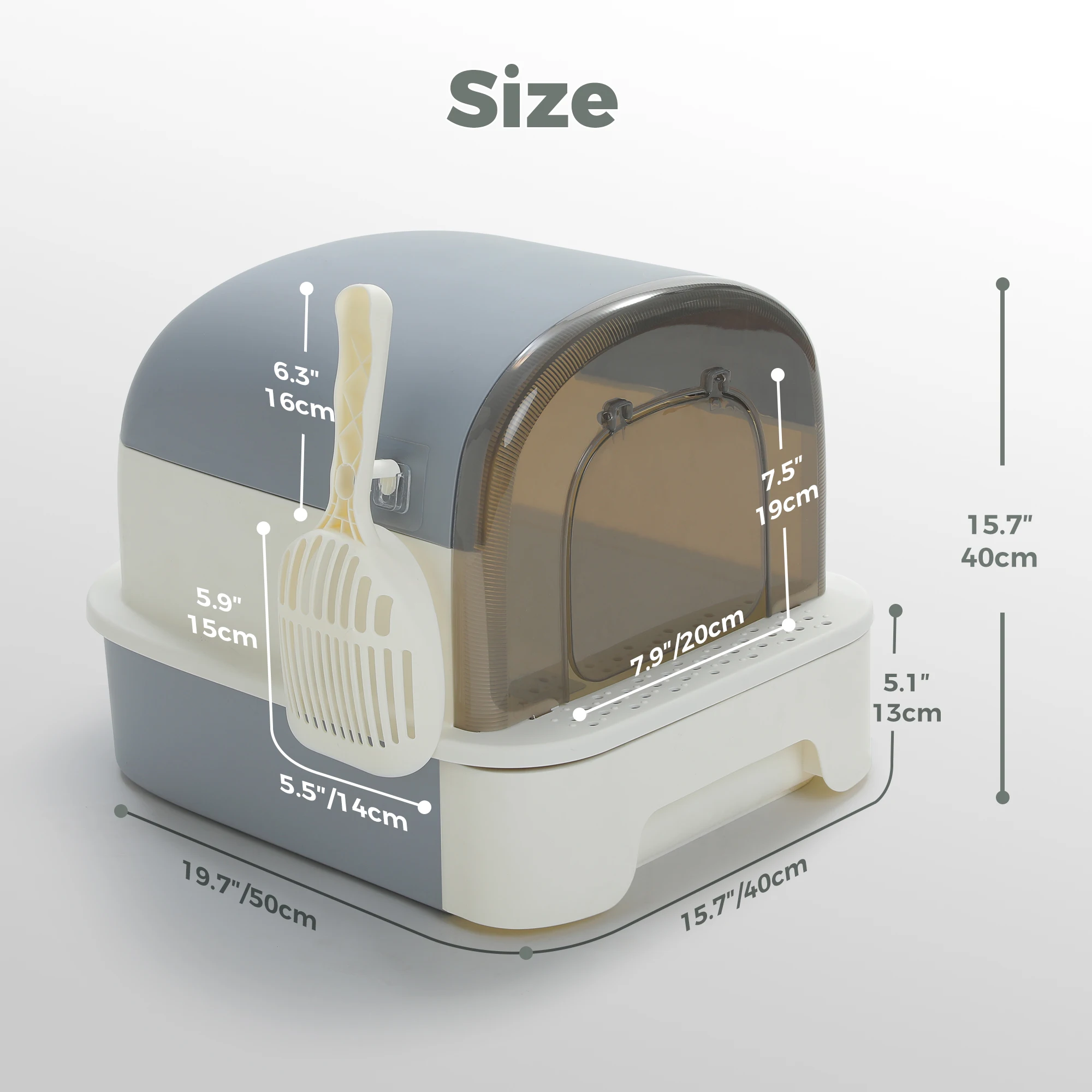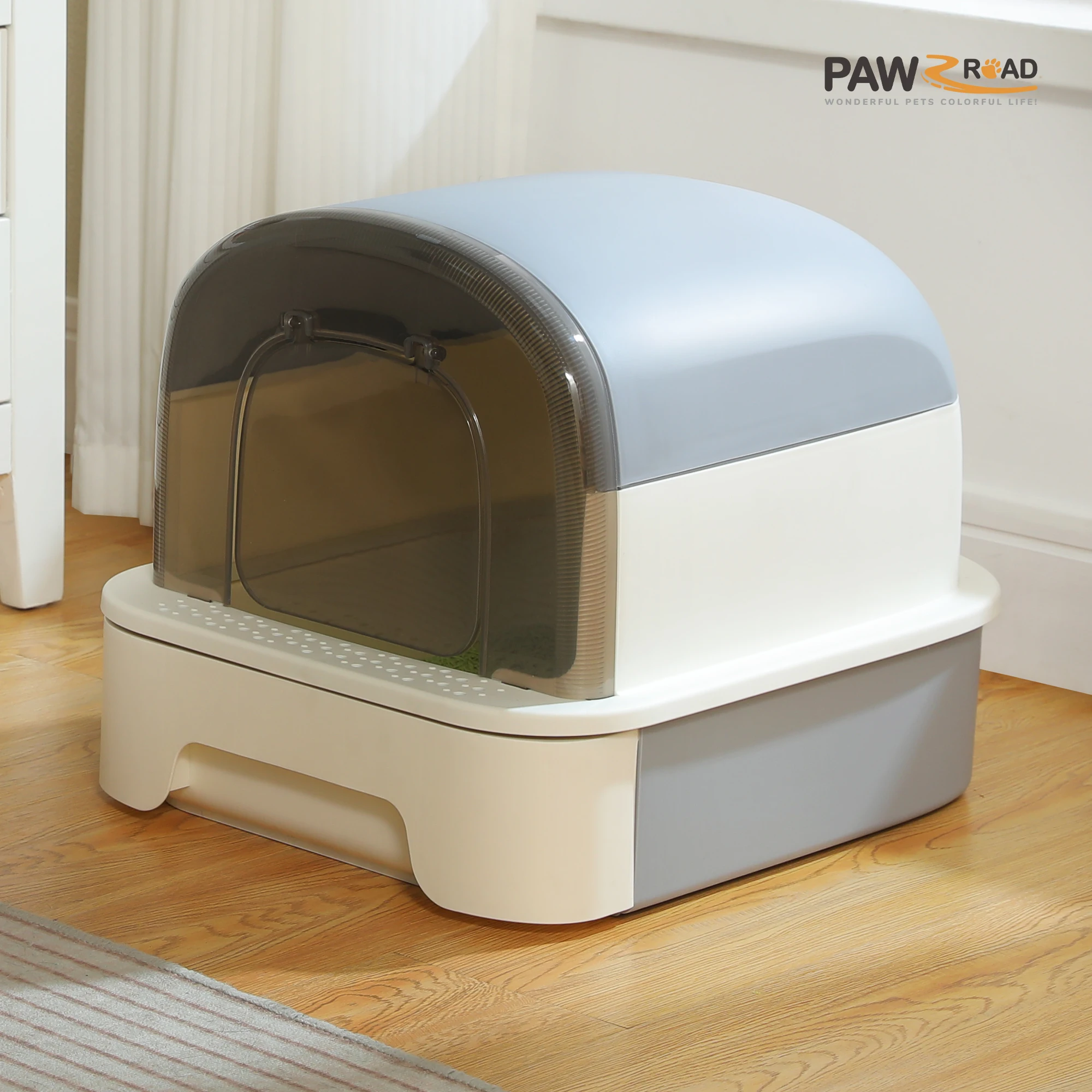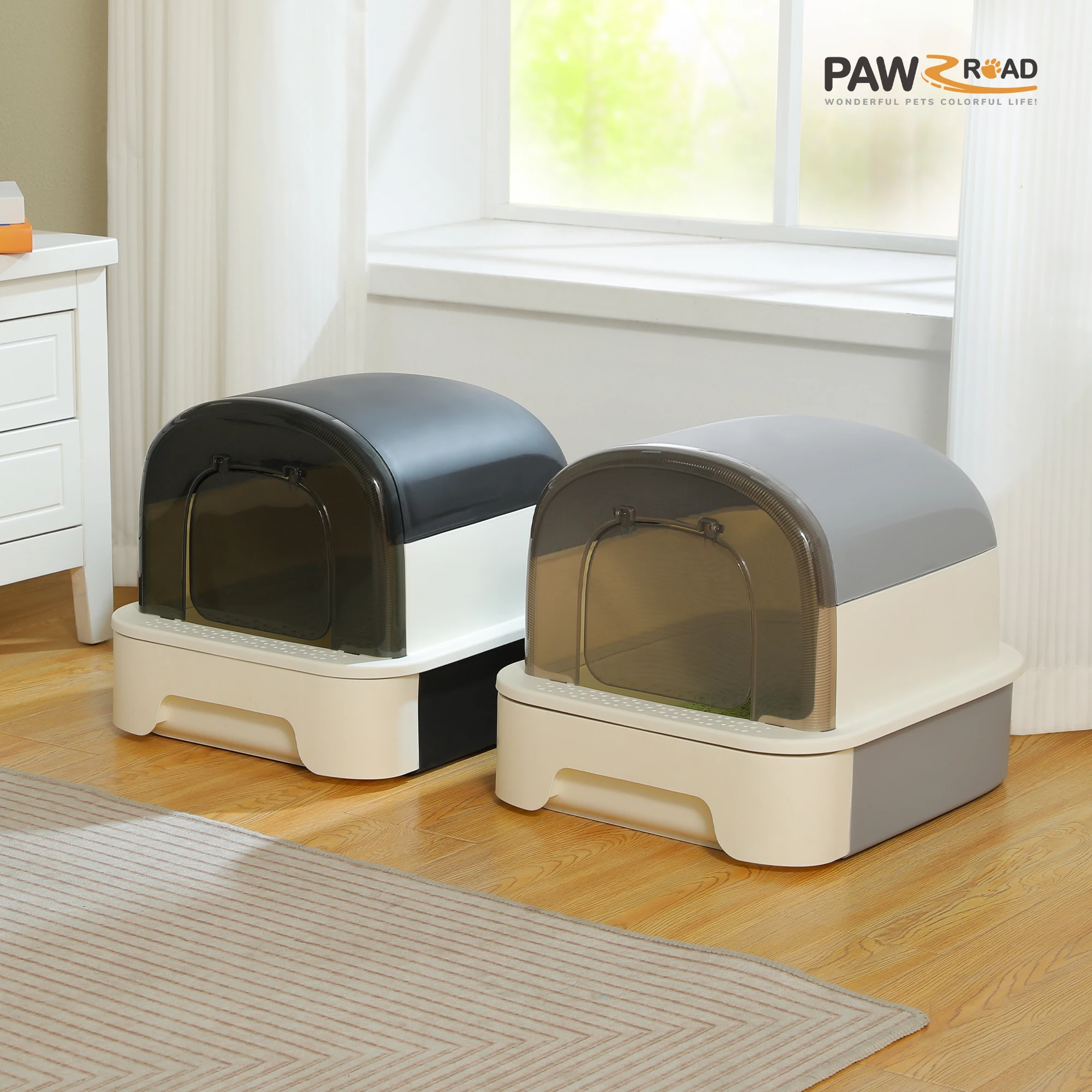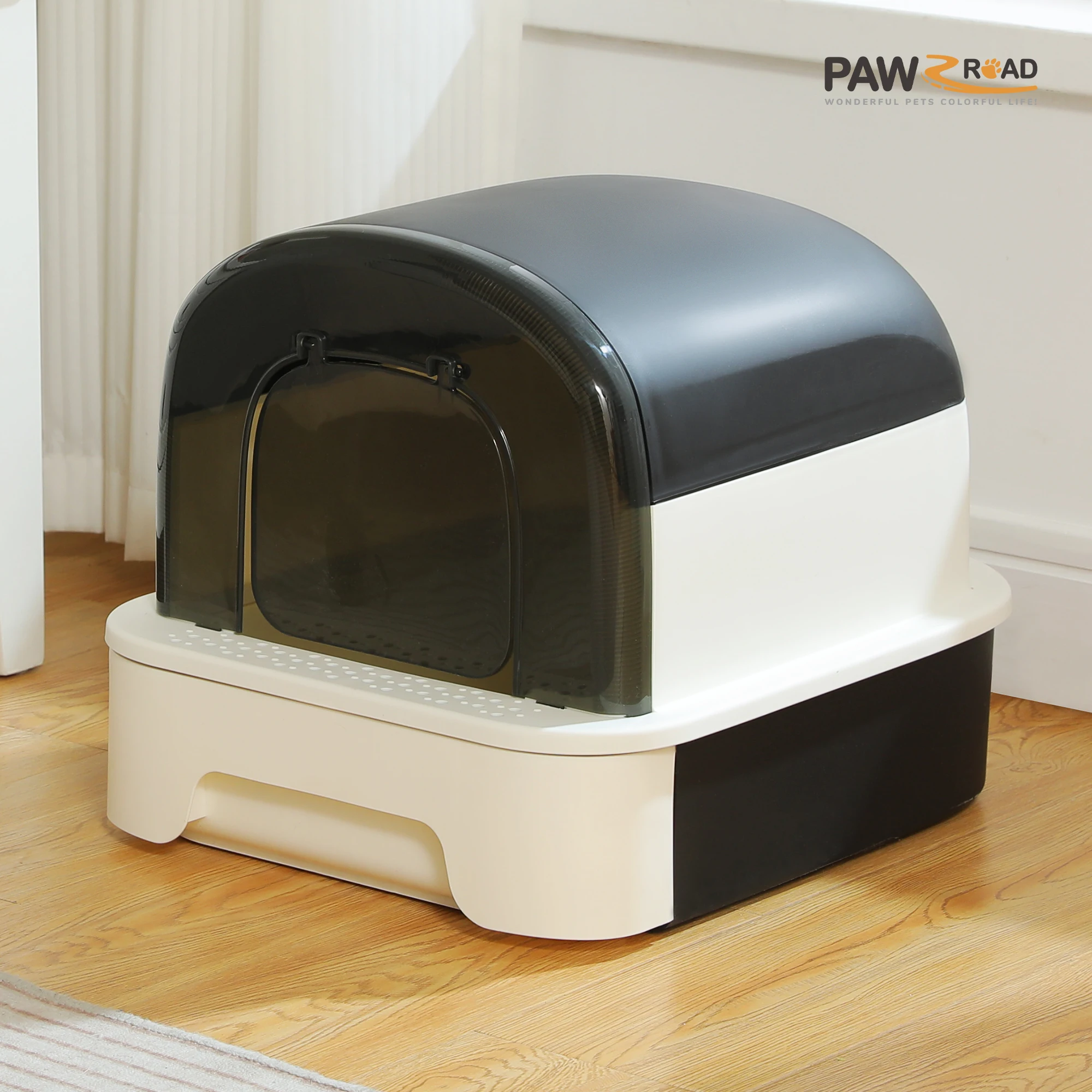 1. Enclosed Design: The litter box features an enclosed design, providing a private and comfortable space for your cat to use the bathroom.